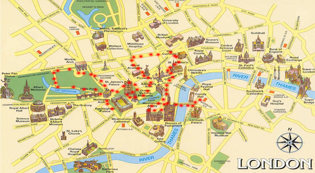 Dr. Barrett has kept us busy since we got off the plane yesterday! We woke up bright and early today and headed into London proper. This is roughly where we walked in 6 hours, on what Dr. Barrett calls his "Death March".